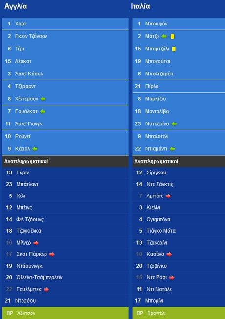 Στη διαδικασία των πέναλτι, η Ιταλία, παρά το γεγονός ότι έχασε πρώτη χτύπημα, βρήκε το δρόμο να επικρατήσει χάρη στο δοκάρι του Γιανγκ και την απόκρουση του Μπουφόν στου χτύπημα του Κόουλ. Ολα τα λεφτά η αλά Πανένκα εκτέλεση του Πίρλο.