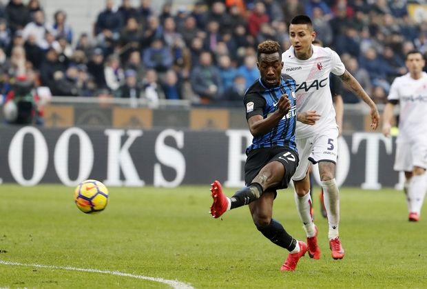 Inter Milan's Yann Karamoh scores his side's second goal during the Serie A soccer match between Inter Milan and Bologna at the San Siro stadium in Milan, Italy, Sunday, Feb. 11, 2018. (AP Photo/Antonio Calanni) AP