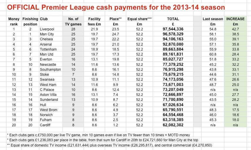 Δείτε και τα περσινά αντίστοιχα έσοδα της Premier League (σεζόν 2013-14):
