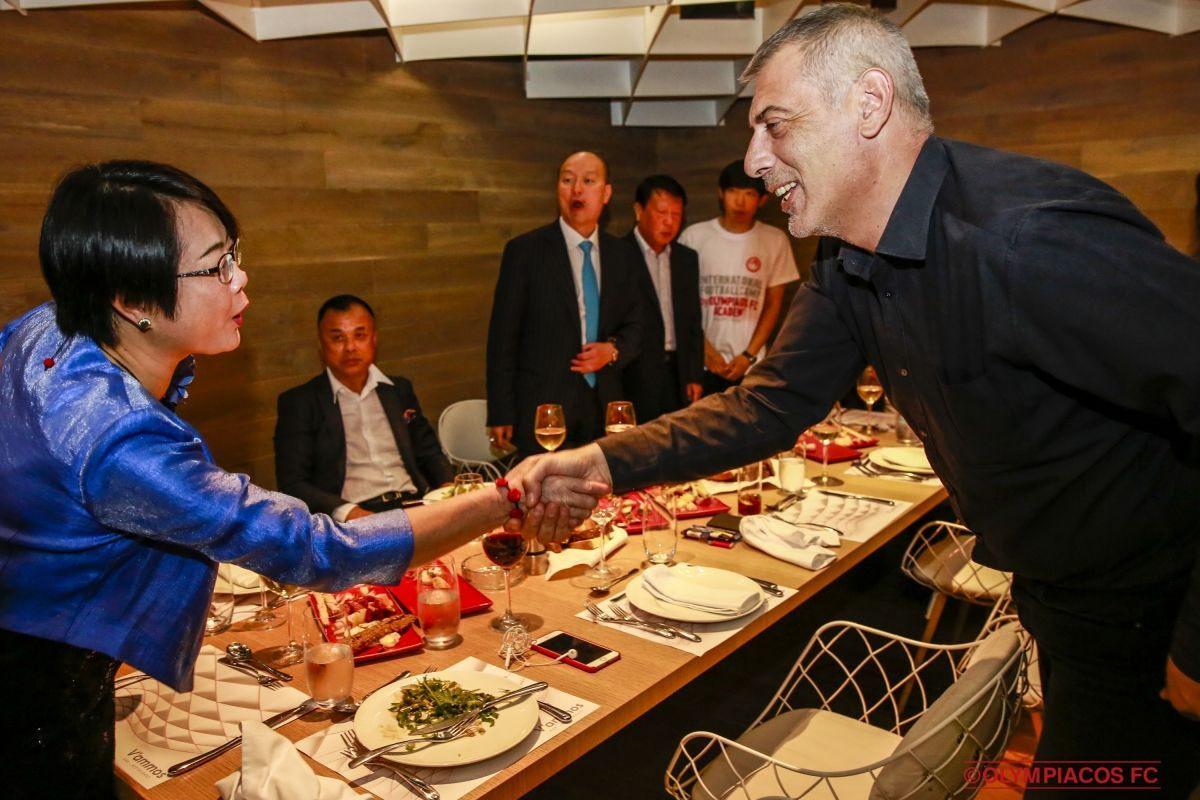 Η αποστολή της Beijing Enterprise FC δείπνησε στο εστιατόριο “Vammos” στο “Γ. Καραϊσκάκης” και απόλαυσε την ελληνική φιλοξενία και φυσικά το εξαιρετικό φαγητό. Το παρών στο επίσημο δείπνο της ΠΑΕ Ολυμπιακός προς την αποστολή της κινεζικής ομάδας έδωσε ο Πρόεδρος και Διευθύνοντας Σύμβουλος της «ΘΡΥΛΟΣ ΑΕ» κ. Γιώργος Παύλου αλλά και ο Δήμαρχος του Πειραιά κ. Γιάννης Μώραλης.