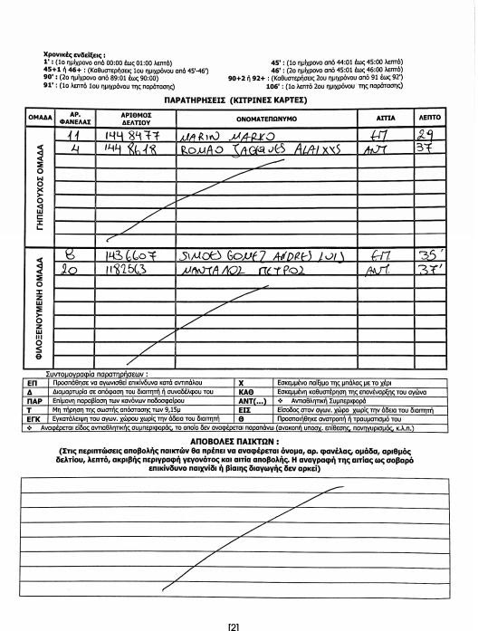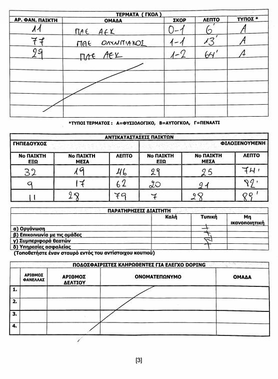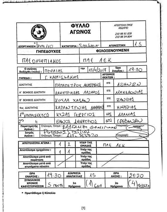 ΤοContra.grαποκαλύπτει το περιεχόμενο του φύλλο αγώνα που αποτελείται από μία σελίδα.