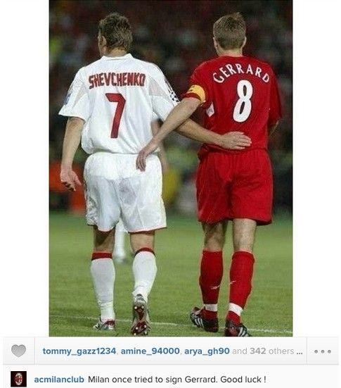 Το μήνυμα συνοδεύτηκε από μία φωτογραφία του επί σειρά ετών ηγέτη της Λίβερπουλ με τον Αντρέι Σεβτσένκο από τον αξέχαστο τελικό του 2005 στην Κωνσταντινούπολη.