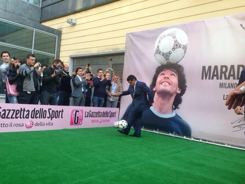 Ο για πολλούς κορυφαίος ποδοσφαιριστής όλων των εποχών θα βρεθεί στις εξέδρες του “Ολίμπικο” για την αναμέτρηση των πρωτοπόρων της Serie A, Ρόμα και Νάπολι, παρευρέθηκε στα γραφεία της “Gazzetta dello Sport”, όπου γνώρισε την αποθέωση από περίπου 300 δημοσιογράφους και αρκετό φίλαθλο κόσμο που περίμεναν να τον απολαύσουν.