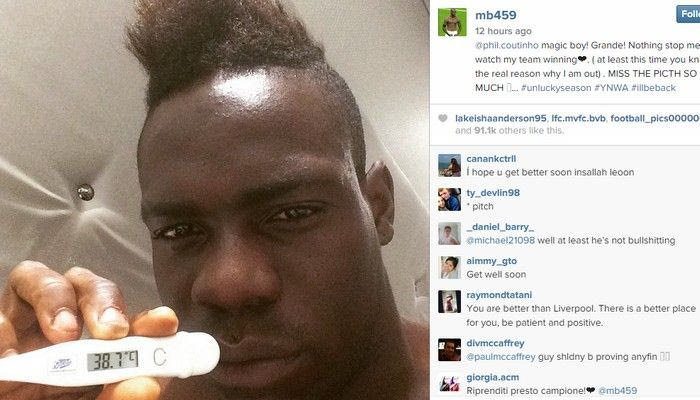 "Αθώος" λόγω πυρετού κρίνεται ο Μάριο Μπαλοτέλι για την απουσία του στο παιχνίδι με την Μπλάκμπερν, όπως απέδειξε με τη φωτογραφία που ανέβασε στο instagram.