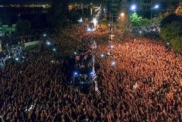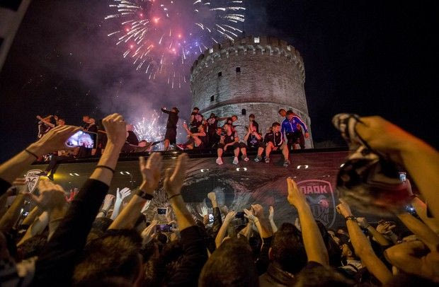 Ο Βλάνταν Ίβιτς και το υπόλοιπο προπονητικό επιτελείο, όλοι οι ποδοσφαιριστές αλλά και οι Ιβάν και Γιώργος Σαββίδης δεν χάλασαν το χατήρι των φιλάθλων και ανέβηκαν στην οροφή του πούλμαν για να γνωρίσουν την αποθέωση (ο Ιβάν Σαββίδης έγινε σύνθημα στα χείλη του κόσμου ενώ αποθέωση γνώρισε και ο προπονητής της ομάδας) ενώ την παράσταση έκλεψε ο Αμρ Ουάρντα.