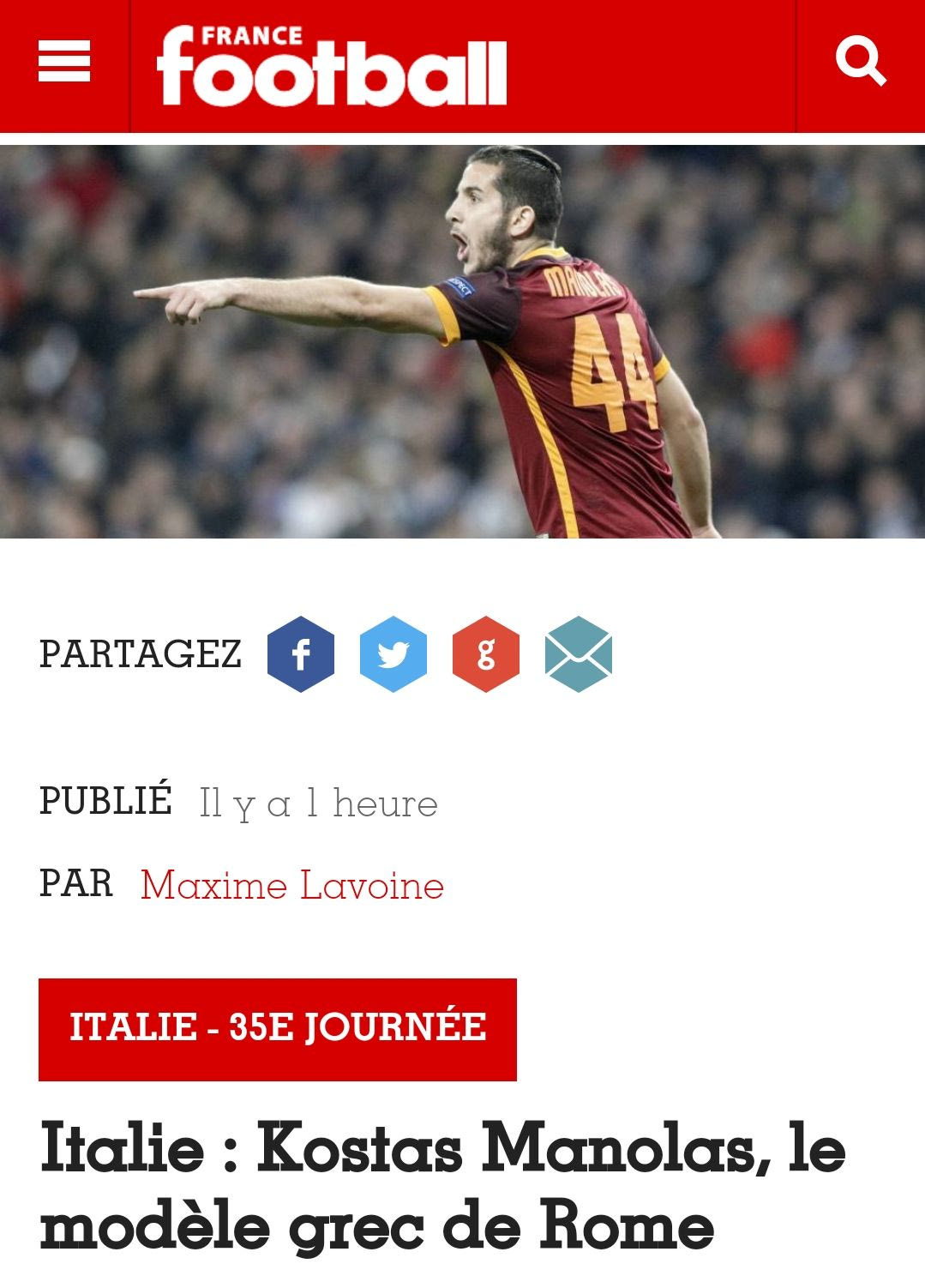 Ο Κώστας Μανωλάς αποτελεί top μεταγραφικό στόχο για κορυφαίες ομάδες της Ευρώπης και το France Football ασχολείται εκτενώς με την περίπτωσή του.