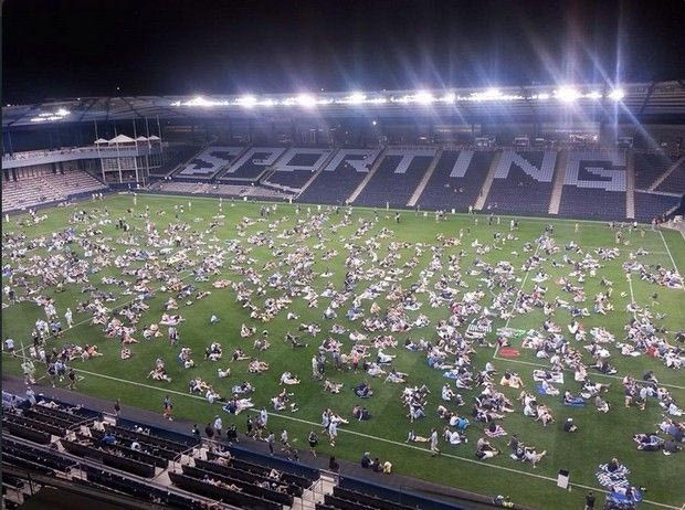 Ο αγώνας του Κάνσας με τη Νέα Υόρκη (1-1), είχε ολοκληρωθεί και οι φίλαθλοι μην έχοντας κάτι καλύτερο να κάνουν, άραξαν στο γρασίδι και παρακολούθησαν τον φιλικό αγώνα ΗΠΑ - Αζερμπαϊτζάν.