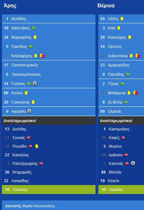 Αξίζει να σημειωθεί πως οκτώ λεπτά πριν την ολοκλήρωση του αγώνα ο Αρης έμεινε με 10 παίκτες μετά την δεύτερη κίτρινη (για θέατρο) που αντίκρισε ο Καζναφέρης.