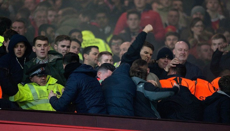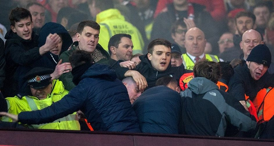 Σκηνές απείρου κάλλους έλαβαν χώρα στις κερκίδες του "Ολντ Τράφορντ" με οπαδούς της Γιουνάιτεντ και της Λίβερπουλ να ανταλλάσσουν εμετικά συνθήματα και στη συνέχεια να παίζουν ξύλο!