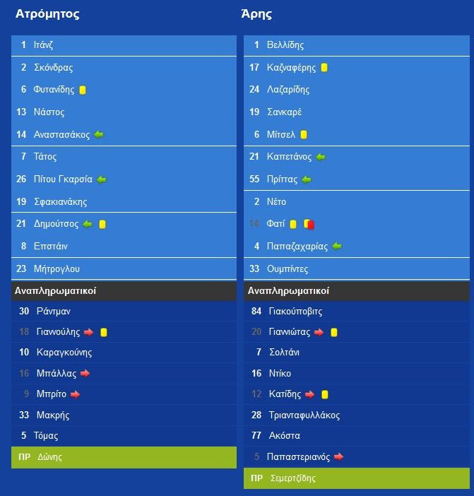 Ο (υπηρεσιακός) προπονητής του Αρη Γιάννης Μιχαλήτσος είχε απαξιώσει τους παίκτες που κάθισαν στον πάγκο στο παιχνίδι Κυπέλλου της προηγούμενης Πέμπτης. Παρόλα αυτά επέλεξε δύο απ’ αυτούς για το αρχικό σχήμα της Κυριακής (Κατίδης, Σανκαρέ) και η ομάδα του μεταμορφώθηκε προς το καλύτερο.