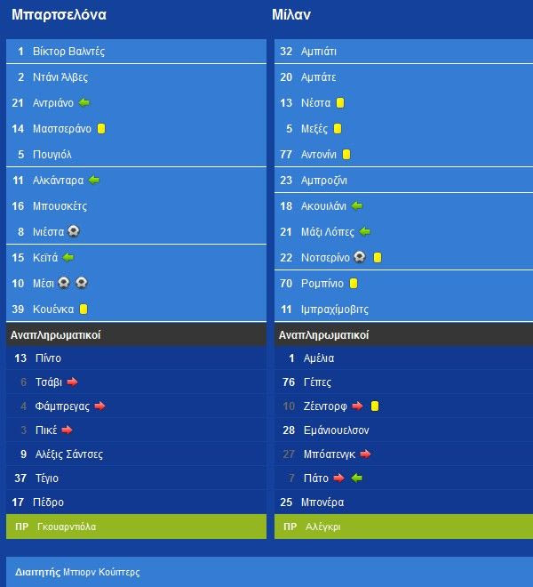 Σκόρερ: 11′ πεν, 41′ πεν Μέσι, 53′ Ινιέστα / 32′ Νοτσερίνο