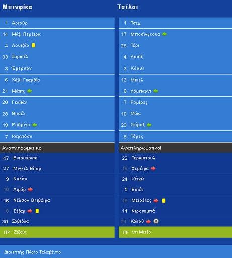 Όσο κι αν έκλεισε τους “μπλε” στα καρέ τους, η Μπενφίκα δεν βρήκε το στόχο προς την εστία του Πετρ Τσεχ, με συνέπεια το 1-0 των Άγγλων να διατηρηθεί μέχρι τέλους.