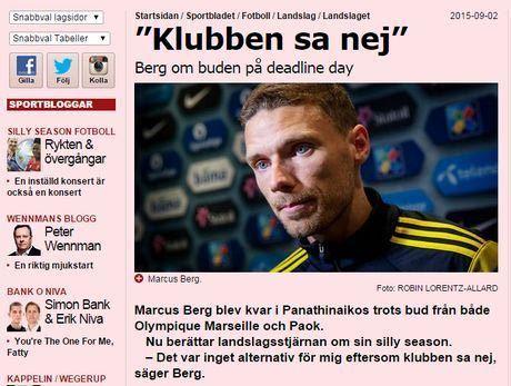 Στις προτάσεις της τελευταίας στιγμής αναφέρθηκε μιλώντας σε σουηδικό μέσο ενημέρωσης ο Μάρκους Μπεργκ, ο οποίος επεσήμανε πως η ομάδα ήταν εκείνη που είπε "όχι".