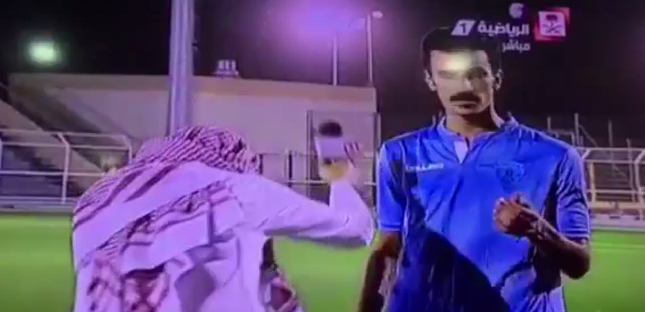 Επίθεση με… νερό δέχθηκε ένας δημοσιογράφος μετά από τη λήξη της αναμέτρησης Αλ Μπατέν-Αλ Ριάντ για την 3η αγωνιστική του πρωταθλήματος Σαουδικής Αραβίας.