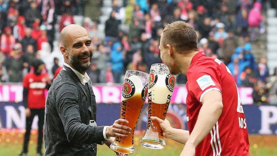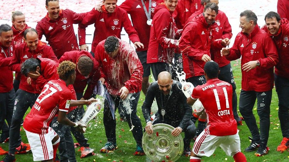 Η φιέστα τίτλου της Μπάγερν εξελίχθηκε σε επίθεση αγάπης στον Πεπ Γκουαρδιόλα, ο οποίος... λούστηκε με μπύρα από τους παίκτες του.