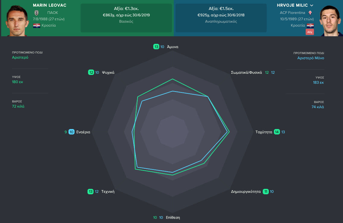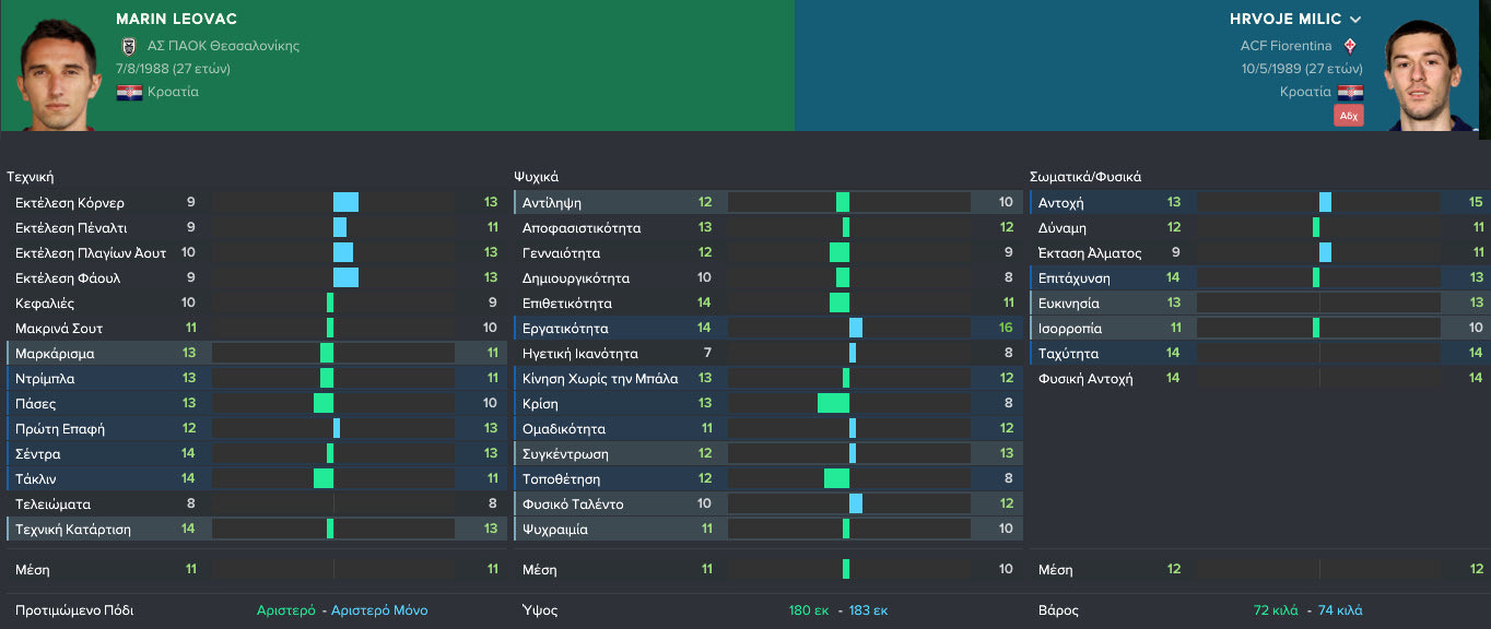 ΤοContra.gr"διαβάζει" μέσωτου Wyscoutτα πεπραγμένα των Μίλιτς - Λέοβατς, με τις φανέλες της Φιορεντίνα και του ΠΑΟΚ αντίστοιχα και "μαθαίνει" τον νεοφερμένο στο Ελληνικό πρωτάθλημα, Μίλιτς, μέσω τουFootball Manager.