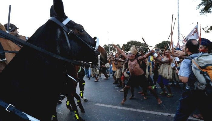 Οπως μετέδωσαν τα βραζιλιάνικα τηλεοπτικά δίκτυα, οι αστυνομικές δυνάμεις έκαναν χρήση δακρυγόνων αν και το πλήθος των διαδηλωτών δεν ήταν μεγάλο.