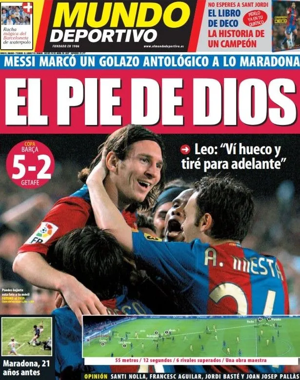 Πέρασαν ακριβώς 10 χρόνια από το εκπληκτικό γκολ του “Pulga” στο Μπαρτσελόνα-Χετάφε στο “Camp Nou” (18/5/07) που είναι… καρμπόν με εκείνο του “Πίμπε Ντ’Όρο” απέναντι στους Άγγλους στα γήπεδα του Μεξικού και η Μπαρτσελόνα αποθεώνει σήμερα το μεγάλο της αστέρι μέσω αναφορές στον επίσημο λογαριασμό της στο Twitter.