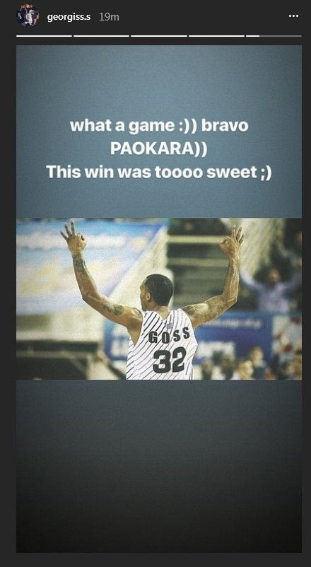 “Τι ματς! Μπράβο ΠΑΟΚΑΡΑ! Αυτή η νίκη ήταν τόοοοσο γλυκιά!”, ήταν το σχόλιό του, το οποίο συνόδευε μία φωτογραφία του γκαρντ του ΠΑΟΚ, Φιλ Γκος, που ήταν ο πρωταγωνιστής για την ομάδα του με 19 πόντους και 6 ασίστ.