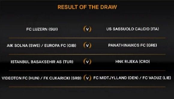 Όσον αφορά στον Παναθηναϊκό θ` αναμετρηθεί με το νικητή του ζευγαριού ΑΪΚ Στοκχόλμης (Σουηδία)-Γιουρόπα (Γιβραλτάρ), ενώ ο ΠΑΣ Γιάννινα εφόσον καταφέρει να προκριθεί από τον β` προκριματικό γύρο, θα αντιμετωπίσει την ολλανδική Αλκμάαρ. Οι “πράσινοι” θα δώσουν το πρώτο παιχνίδι τους εκτός έδρας στις 28 Ιουλίου, ενώ ο αγώνας ρεβάνς θα διεξαχθεί στην Αθήνα στις 4 Αυγούστου.