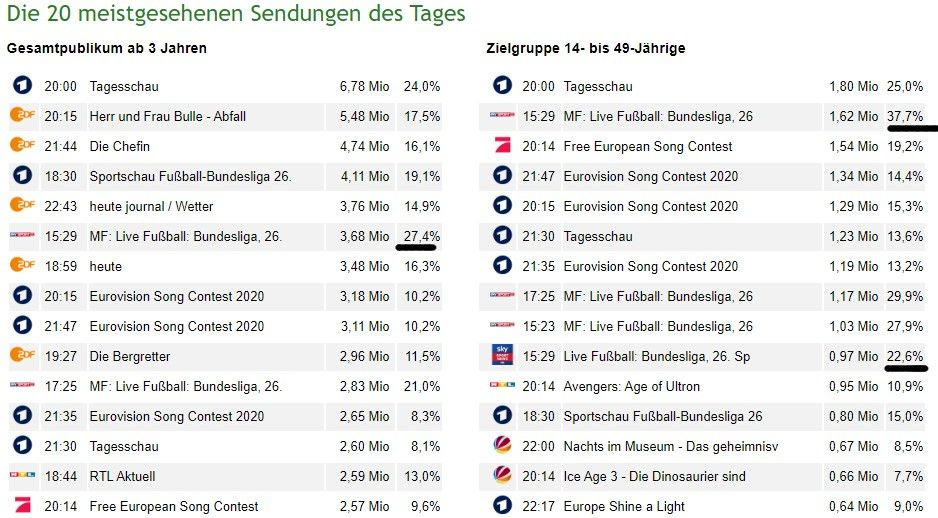 Ακόμη και το (όχι τόσο τουριστικό) Άιντραχτ-Γκλάντμπαχ με το οποίο ολοκληρώθηκε η δόση του Σαββάτου συγκέντρωσε 750.000 θεατές και μερίδιο αγοράς 5.7% στο γενικό σύνολο. Not bad.