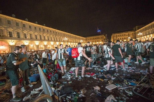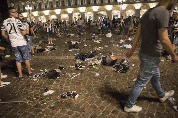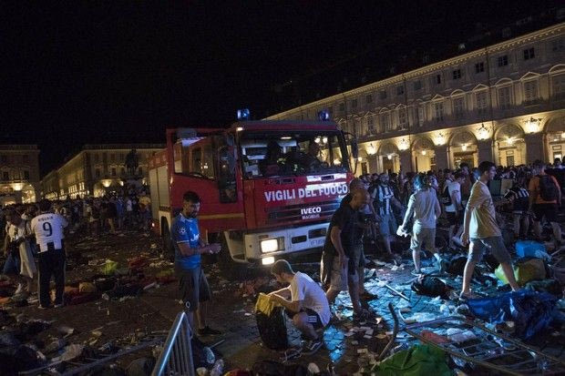 Περίπου 1.400 τραυματίες, εκ των οποίων επτά είναι σε σοβαρή κατάσταση (μεταξύ αυτών και ένα μικρό παιδί 4 ετών) είναι ο συγκλονιστικός απολογισμός από την Πλατεία Σαν Κάρλο του Τορίνου, όπου χιλιάδες οπαδοί συγκεντρώθηκαν το βράδυ του Σαββάτου για να παρακολουθήσουν μέσα από γιγαντοοθόνες τον τελικό του Champions League Γιουβέντους-Ρεάλ Μαδρίτης.