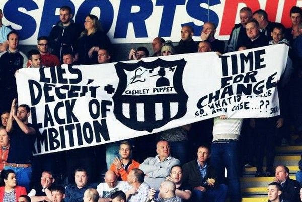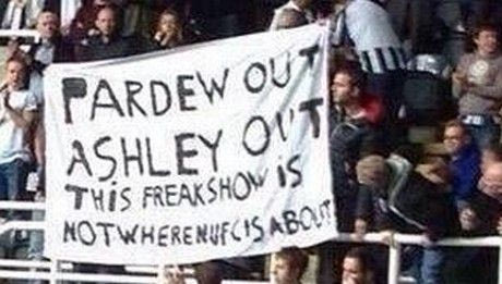 Οι φίλοι της αγγλικής ομάδας εξέφρασαν την έντονη δυσαρέσκειά τους για την κακή εικόνα και την αποχή 45 ετών από τους τίτλους, αναρτώντας πανό κατά του ιδιοκτήτη Μάικ Άσλεϊ και του προπονητή Άλαν Πάρντιου.