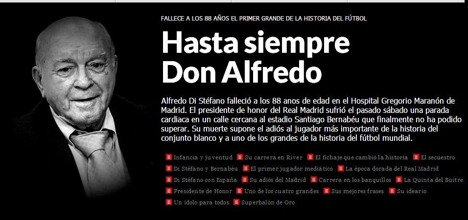 Ο Αλφρέδο Ντι Στέφανο έχασε τη μάχη για τη ζωή το απόγευμα της Δευτέρας σε ηλικία 88 ετών.