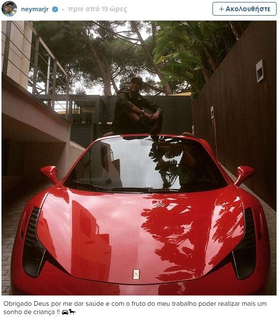 Ένα παιδικό του όνειρο πραγματοποίησε ο σούπερ σταρ της Μπαρτσελόνα, Νεϊμάρ, αγοράζοντας μια Ferrari αξίας 270.000 ευρώ!
