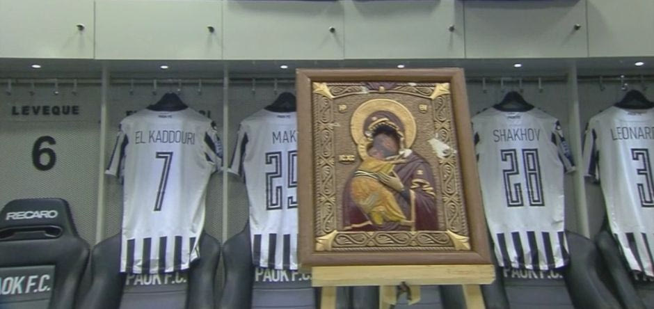 Όπως πάντα έτσι και πριν το παιχνίδι με τον Αστέρα Τρίπολης στα αποδυτήρια του ΠΑΟΚ τοποθετήθηκε η εικόνα της Παναγίας.