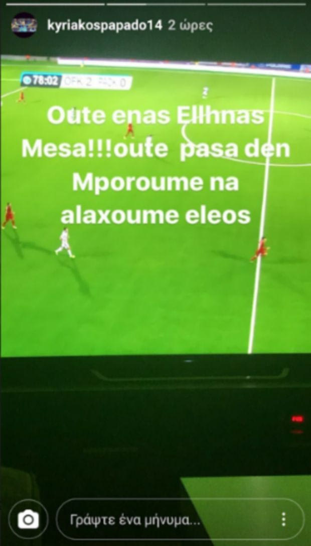 “Μόνο εσείς μπορείτε, μόνο! 90 λεπτά, ούτε φάση, μπράβο μας. Ο Αθανασιάδης φταίει…”.