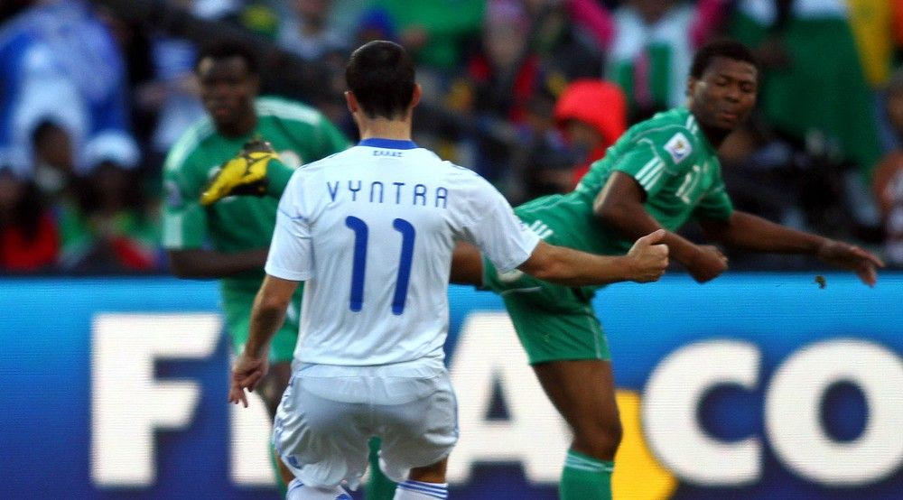 Ο Λουκάς Βύντρα σε μία από τις προσπάθειές του στον αγώνα με τη Νιγηρία Eurokinissi