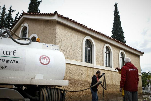 Ακόμη και μηχανήματα επιστράτευσε ο Ολυμπιακός για να βοηθήσει στον καθαρισμό των σπιτιών των κατοίκων της Μάνδρας που δοκιμάζονται έπειτα από τις φονικές καταιγίδες που έπληξαν την περιοχή.