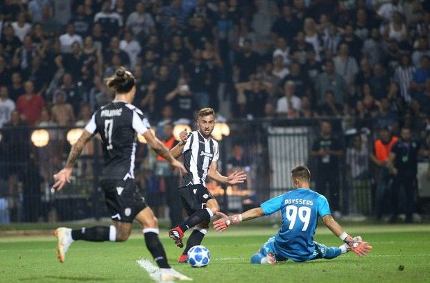 Ο ΠΑΟΚ, με τη δυναμική συμπαράσταση του κόσμου του, μπήκε φορτσάτος στο χορτάρι της Τούμπας, έπιασε την Μπενφίκα από το… λαιμό από τα πρώτα δευτερόλεπτα και στο 13′ ανταμείφθηκε για την πίεση που άσκησε, κάνοντας το 1-0 με τον Πρίγιοβιτς σε μία φάση που οι παίκτες του Λουτσέσκου δίδαξαν… τριγωνομετρία.