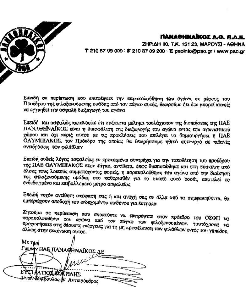 Έγγραφο-ντοκουμέντο: Η ΠΑΕ Παναθηναϊκός είχε ζητήσει κεκλεισμένων ή ματαίωση!