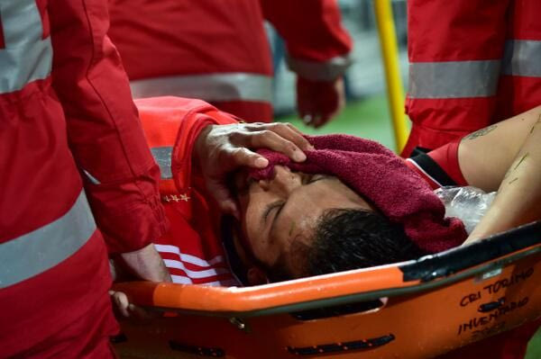 Το παιχνίδι συνεχίστηκε προτού διακοπεί εκ νέου μετά από λίγο, λόγω ενός τραυματισμού στο πρόσωπο, του αμυντικού της Μπενφίκα, Εζεκίελ Γκαράι. Σε μια προσπάθεια του μέσου του Γιουβέντους, Πολ Πογκμπά, να κάνει ένα ανάποδο ψαλιδάκι και να στείλει την μπάλα στην εστία, αντί να χτυπήσει την μπάλα, χτύπησε το πρόσωπο του παίκτη της Μπενφίκα. Ο Γκαράι έπεσε αιμόφυρτος στο χορτάρι και αποχώρησε με το φορείο, αλλά επειδή οι αλλαγές των Πορτογάλων είχαν ολοκληρωθεί, τελείωσαν το ματς με 9 παίκτες (νωρίτερα στον αγώνα είχε αποβληθεί και ο Ένζο Πέρες, αφού δέχθηκε δεύτερη κίτρινη κάρτα).