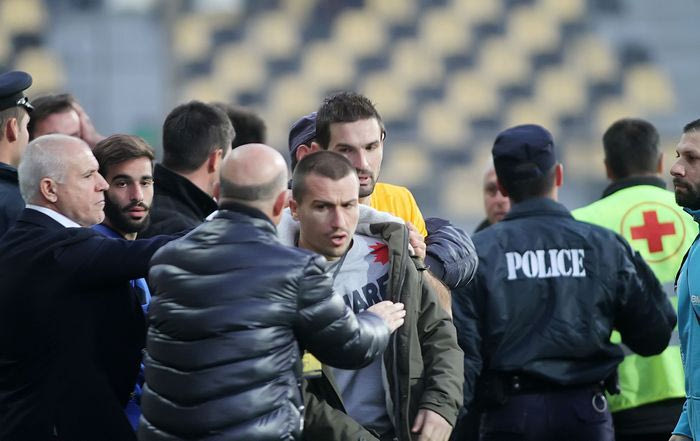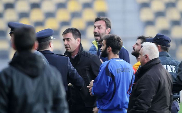 “Ο κύριος αυτός, δεν ξέρω την ιδιότητα του, με απώθησε με βίαιο τρόπο. Μιλούσα σε ήρεμο τόνο με τον κ. Αναστόπουλο και με απώθησε. Στη συνέχεια, κάποιος από την ασφάλεια του Άρη με χτύπησε στο αυτί. Είμαι οικογενειάρχης, έχω τρία παιδιά και είναι άδικο κάποιοι που βαφτίζονται προπονητές, να δημιουργούν εντάσεις.