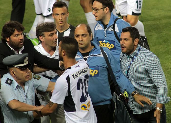 Ο πανηγυρισμός του Τάσου Καραμάνου στην εκπνοή του πρώτου ημιχρόνου του αγώνα της Τούμπας εκνεύρισε τον Στέφανο Αθανασιάδη, ο οποίος ζήτησε τα ρέστα από τον σκόρερ του Ατρομήτου, με συνέπεια να προκληθεί ένταση.
