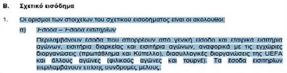Σε περίπτωση που υπολογίζει τα €170, θα πρέπει να δικαιολογήσει τι είναι η “αξία ειδικής συμμετοχής των €120” αφου η ΕΠΟ επιτρέπει ΜΟΝΟ την συνδρομή μελών στον υπολογισμό των εσόδων: