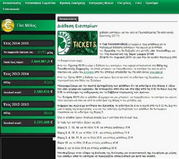 Όπως βλέπουμε στο παράρτημα, τα μέλη της «Παναθηναϊκής Συμμαχίας» έχουν δικαίωμα να αγοράσουν εισιτήριο σε «προνομιακές τιμές» και καλούνται να καταβάλουν αντίτιμο €340 για την Θύρα 1 το οποίο διαιρείται σε: