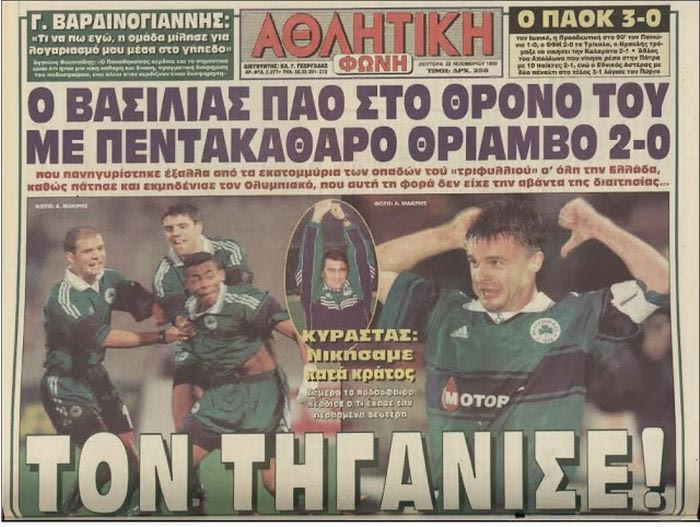 Ο Παναθηναϊκός νίκησε για πρώτη φορά τον Ολυμπιακό μετά από τριάμισι χρόνια κι η Αθλητική Ηχώ έκανε λόγο για “τηγάνισμα” του Ολυμπιακού.