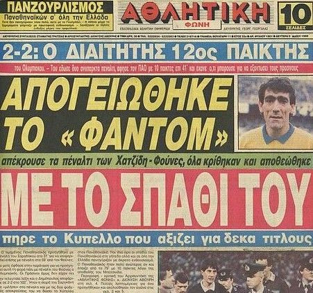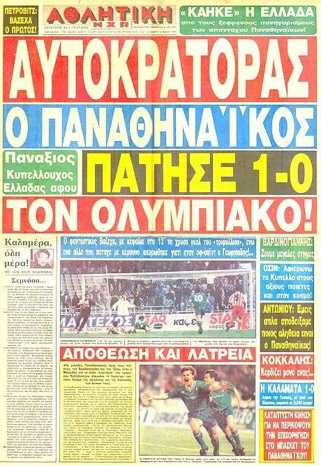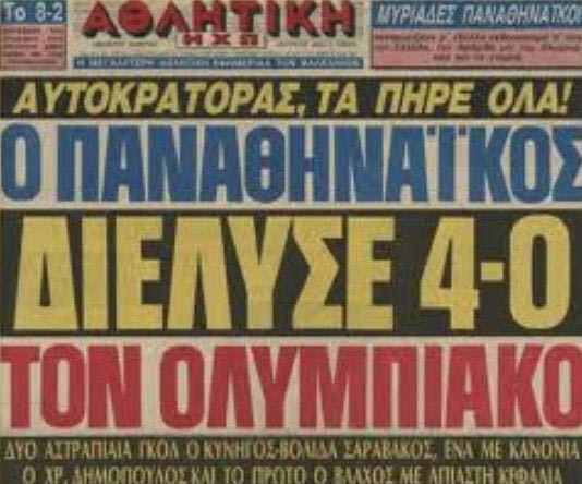Το πρωτοσέλιδο της Αθλητικής Ηχούς μετά το 4-0 του “αυτοκράτορα” Παναθηναϊκού επί του Ολυμπιακού στον τελικό Κυπέλλου του 1986.