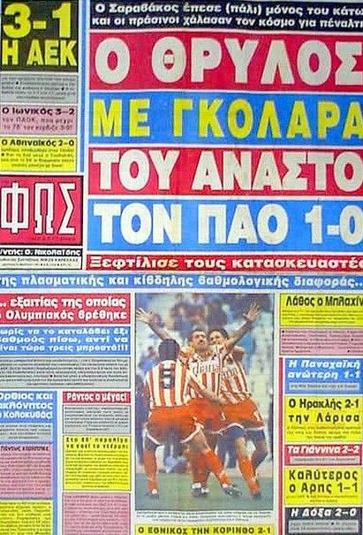 Μετά τη λαίλαπα της εποχής Κοσκωτά κι ενώ ο Αργύρης Σαλιαρέλης είχε πάρει τα ηνία στα κοινά του, ο Ολυμπιακός σημείωσε μία σημαντική νίκη γοήτρου επί του Παναθηναϊκού με γκολ του Νίκου Αναστόπουλου.