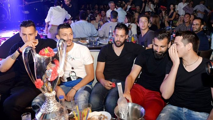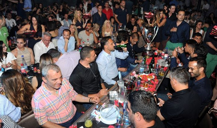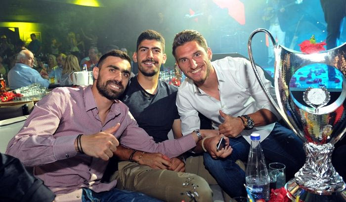 Ο Ολυμπιακός πανηγύρισε την κατάκτηση του 17ου νταμπλ της ιστορίας του και το γιόρτασε δεόντως. Οι ερυθρόλευκοι συγκεντρώθηκαν σε νυχτερινό κέντρο το βράδυ του Σαββάτου και το γλέντησαν αλά ελληνικά.