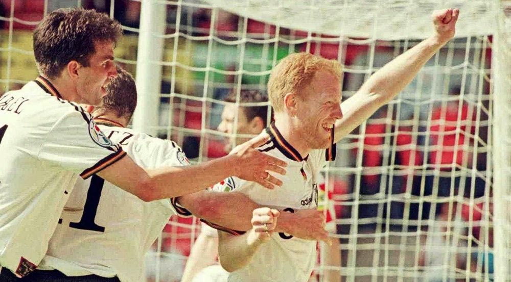 Ο Ματίας Ζάμερ πανηγυρίζει το δεύτερο γκολ της Γερμανίας στο 2-1 επί των Κροατών, στον προημιτελικό του Euro 1996 AP Photo/Michael Probst