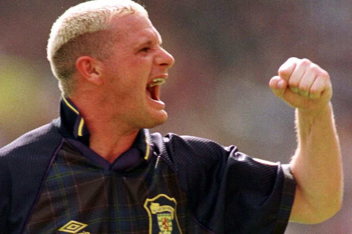 Ο Πολ Γκασκόιν της Αγγλίας έπειτα από τη νίκη επί της Σκωτίας για τη φάση των ομίλων του Euro 1996 στο 'Γουέμπλεϊ', Λονδίνο, Σάββατο 15 Ιουνίου 1996 AP Photo/Michael Probst