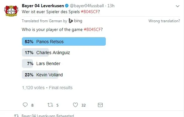 Τελικά η “παρεξήγηση” λύθηκε, αφού και οι δυο ψηφίστηκαν ως MVP! Αυτό που κάνει η Λεβερκούζεν, είναι πως φτιάχνει τρεις διαφορετικές ψηφοφορίες στους τρεις λογαριασμούς της στα social media.