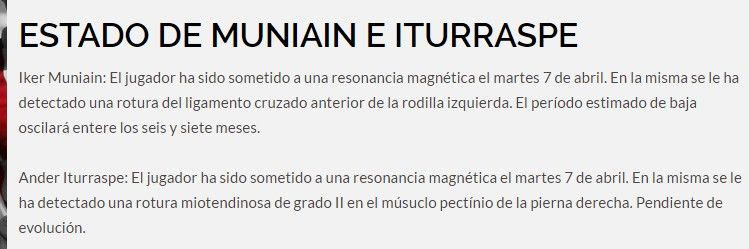 Ο Ικερ Μουνιαϊν υπέστη ρήξη χιαστών στον αγώνα των Βάσκων κόντρα στη Σεβίλλη και θα μείνει εκτός αγωνιστικής δράσης το λιγότερο έξι μήνες.