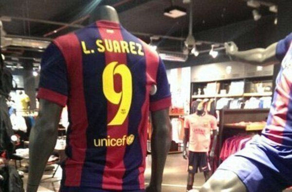 Φωτογραφίες που κυκλοφορούν στο διαδίκτυο, δείχνουν ένα κατάστημα Νike με προϊόντα της Μπαρτσελόνα να έχει τις νέες φανέλες που θα φορά η ισπανική ομάδα τη σεζόν 2014-15, με το όνομα του Λουίς Σουάρες να είναι τυπωμένο πάνω σε αυτές.