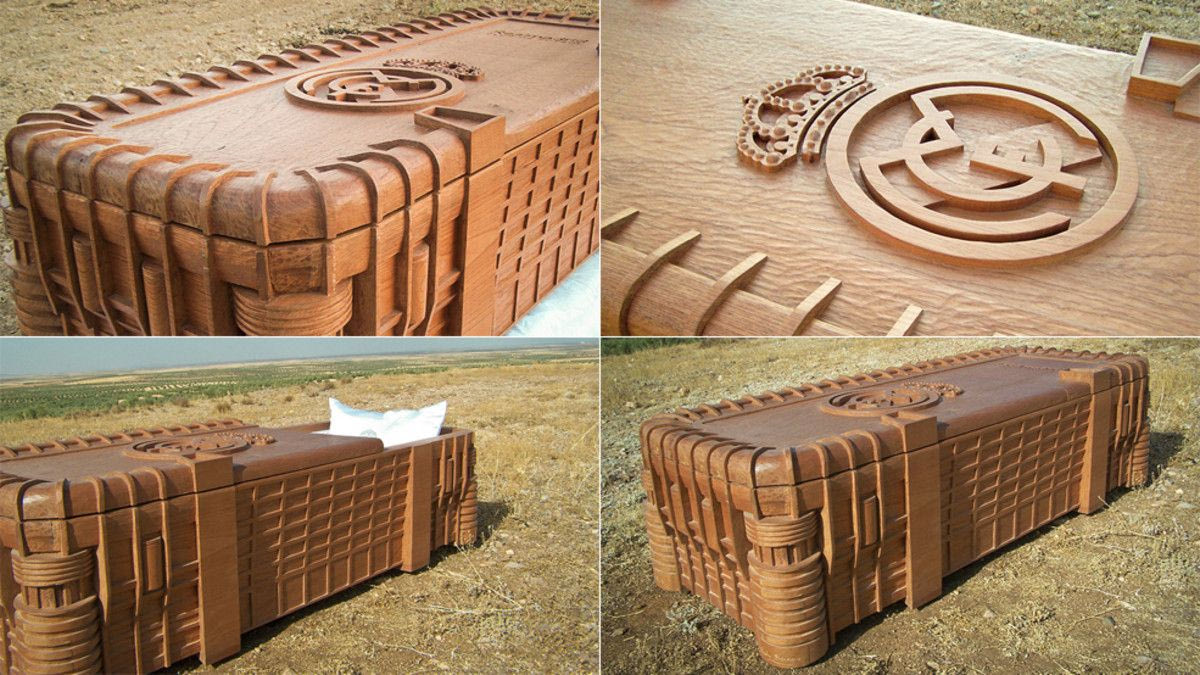 Η εταιρία που εδρεύει στο Τολέδο, είναι φημισμένη για τα… περίεργα σχέδια που δίνει στα φέρετρά της! Έτσι λοιπόν, αποφάσισε να δημιουργήσει άλλο ένα… ιδιαίτερο φέρετρο που απεικονίζει το “Σαντιάγο Μπερναμπέου!”